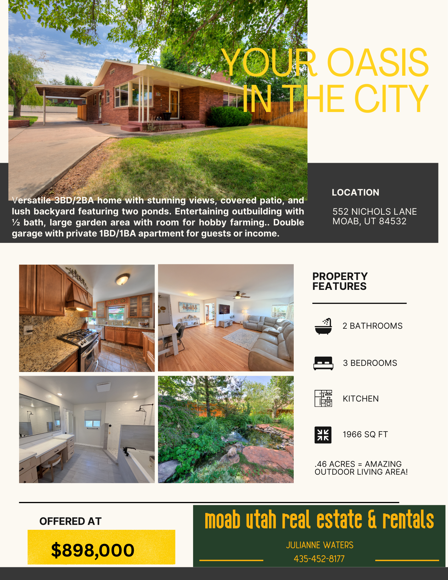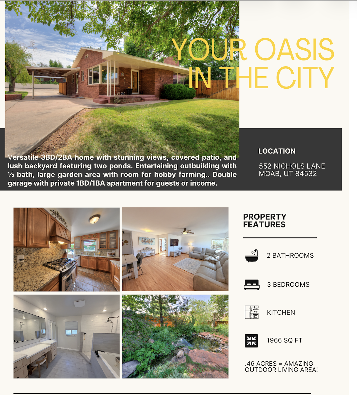 "I hired Julianne to be my realtor in Moab to purchase a commercial property, which proved to be much more intricate than buying a residential one. Her expertise, professionalism, swift responses, and dedication were indispensable. I couldn't envision navigating this process with any other realtor. I've purchased more than 10 properties in my lifetime, and Julianne surpassed all previous realtors I've worked with. I assure you, choosing Julianne as your next realtor will be a decision you won't regret."